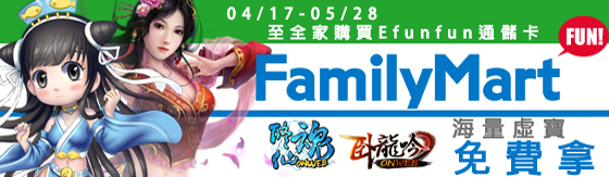 Efunfun 通儲卡150、400、1000、2000元,儲值成功即可獲得《修仙魂》或《臥龍吟》各面額專屬活動虛寶!欲購從速~請至全家FamiPort機台點選!