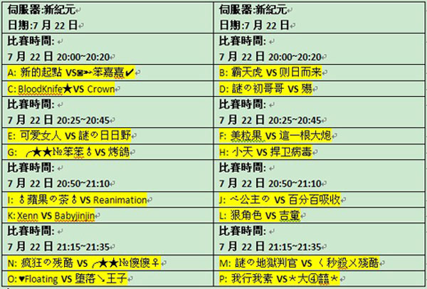 另:16強比賽將在7月23日20:00開始
