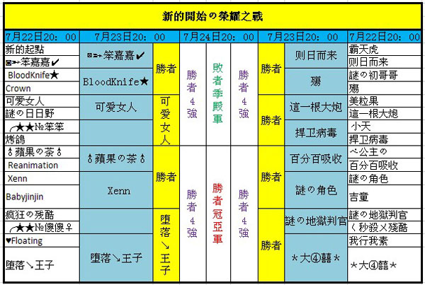 「新紀元」榮耀之戰活動16強對陣表