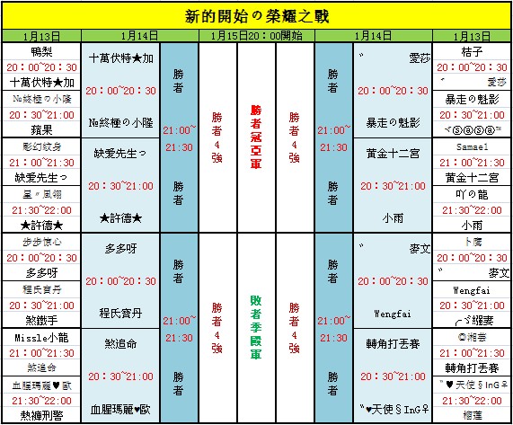 墜星湖“新的起點の榮耀之戰”16強排程公佈