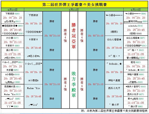 「第二屆世界彈王爭霸賽の美女挑戰賽」16強名單公佈