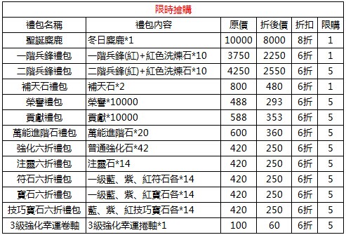 活動內容:在活動時間內可搶購裡面的優化禮包和稀有道具